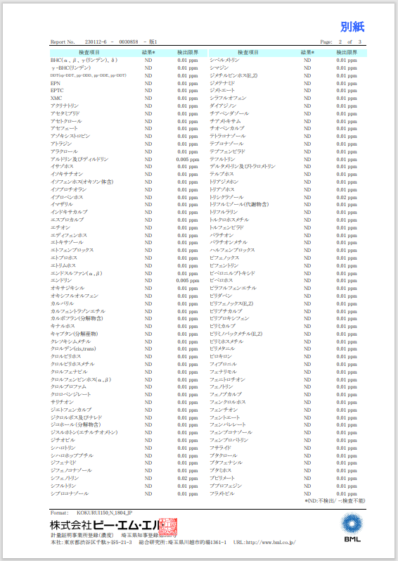 当社では栽培時農薬不使用の製品を扱っておりますが、お客様に安心してご利用いただける商品づくりを心掛け、当社独自で販売中の鳥さんのごはんに使用している雑穀をランダムにピックアップし150種類の農薬検査をかけました。